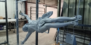 À Lorient, ALS PEINTURE intervient actuellement sur la restauration du Christ en métal de la chapelle de Lesbin, une œuvre d’environ 100 kg.